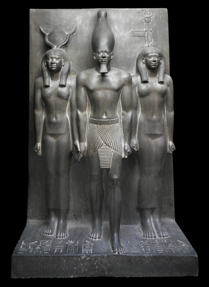 Attribution: Heritage Key Cairo Egypt Key Dates This item is dated from the 4th Dynasty of the Old Kingdom. Key People The triad depicts King Menkaure, the last Great Pyramid builder. The 17th Nome of Upper Egypt and the goddess Hathor are pictured to the left and the right of Menkaure respectively. In the Triad of Menkaure, King Menkaure is depicted in the foreground wearing the white crown of Upper Egypt. Hathor, the goddess of music and love, is shown to the right of Menkaure, holding his hand. To the left of Menkaure is the 17th Nome of Upper Egypt.…