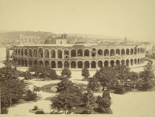 This photograph of the Verona Arena and Piazza Br snapped by Fratelli Alinari shows that already in the early 19th century one could do sensible city planning and keep the cars – or horses – far enough from the monuments. Take that, Rome! 😉