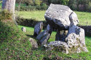 The Tirnony Portal Tomb, also known as the Tirnony Dolmen, is a single-chamber megalithic tomb, estimated to be about 5,000 to 6,000 years old. The capstone is – or rather, was – supported by three of six upright stones, two of which form the portal.