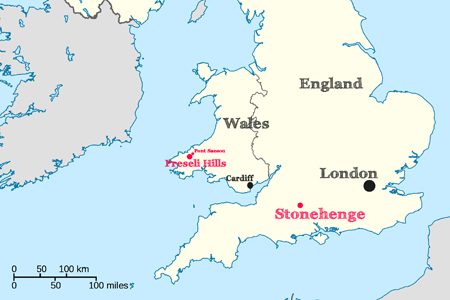 It has been argued that humans transported the spotted dolerites from the high ground of Mynydd Preseli down to the coast at Milford Haven and then rafted them up the Bristol Channel and up the River Avon to the Stonehenge area.
