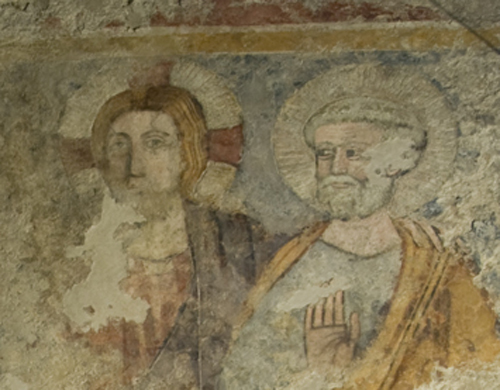 Other frescoes at the site include a representation of the hand of God or Jesus and an angel with a crown.