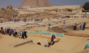 While conducting work at Giza, the team also found a mudbrick wall on the eastern side of Khafre’s valley temple. While a modest find it could have been part of something grander.