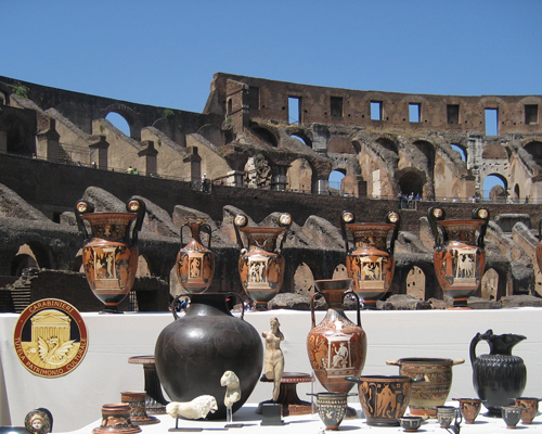 More than 300 looted antiquities, estimated to be worth more than EUR15 million, were displayed to the press this morning in Rome, having been repatriated to Italy after they were discovered in a warehouse in Switzerland. It was a scene slightly reminiscent of a Victorian detective novel, in which the robber and his looted candlesticks is unveiled before an impressed gathering of country house guests. Only today’s unveiling took place inside the Colosseum rather than on the pages of a 19th century novel and while there was no criminal present, there was plenty of loot, which consisted of objects such…