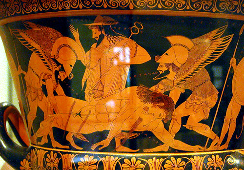 Examples of everyday objects on display in the exhibition include a candle holder in the shape of a boy and the Rhyton of Pontius, a large Greek drinking fountain (rhytons were common in ancient Persia and were brought back to Athens following Greek conquests). Roman demand for Greek art created quite a market and Roman ships full of statues, vases and other objects from Greece were shipped back to Rome, where they would have been sold to private individuals.