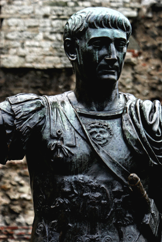 Key People Key People: Trajan Just outside Tower Hill tube station is a statue of who is believed to be the Roman Emperor Trajan. It stands outside one of the last remaining pieces of the London Wall. The wall was built by the Romans to surround and protect Londinium. Trajan was the 13th Roman Emperor who reigned from 98 until his death in 117 AD. Trajan is best known for his extensive public building programme, which reshaped the city of Rome and left multiple enduring landmarks such as Trajan’s Forum, Trajan’s Market and Trajan’s Column. His major campaigns as emperor…