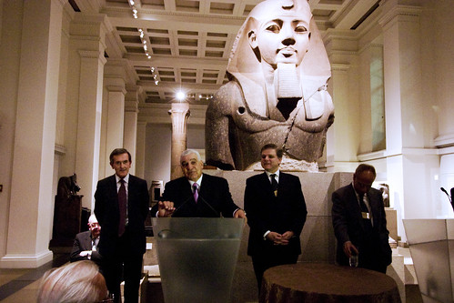 The British Museum’s Egyptian Sculpture Gallery was packed last night, as hundreds of dignitaries flocked to see The World’s Most Famous Archaeologist (copyright all bloggers) Dr Zahi Hawass, speaking ahead of the release of his latest book A Secret Voyage. Cameras in hand, Heritage Key was there to witness Dr Hawass’ appearance, heralded more like the second coming than a book signing. Stood in front of the museum’s colossal head of Ramesses the Great, Dr Hawass boomed out at his fans like an emissary from the pharaoh himself. But as he spoke, you could sense he was looking longingly above…