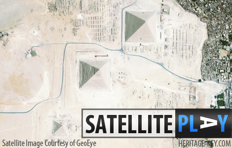 The Pyramids of Giza at the Giza Plateau, Egypt, are one of the most famous sights in the world. It’s probably photographed from every possible angle from the ground, but often do you see it from above?Sure, Google Earth might give you an insight into aerial photography, but GeoEye has kindly given Heritage Key amazing satellite imagery at a high resolution, allowing us to see the pyramids as if we were in the space shuttle (or an alien space craft). Giza is, of course, home to the iconic Great Pyramid of Giza. Towering at 138.8 metres, it is the only…