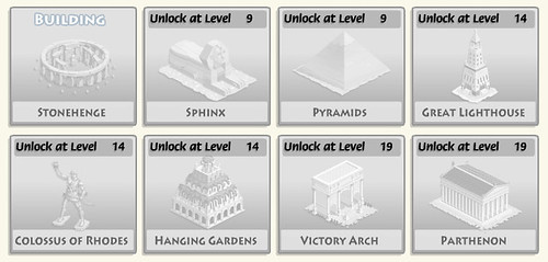 Interestingly for an authentic Roman city, I am also able to build some of the Seven Wonders of the Ancient World, plus extras. The Pyramids, the Colossus of Rhodes, the Hanging Gardens of Babylon, and the Lighthouse of Alexandria are all there in the line-up, plus you can build Stonehenge, the Parthenon and the Great Sphinx, as well as a Victory Arch. The real Romans would have loved to get their hands on such wonders.
