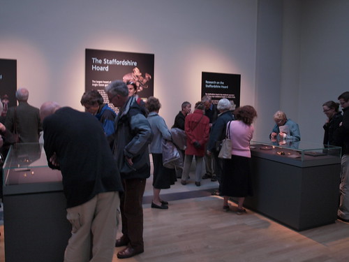 As blogged earlier today, the Staffordshire Hoard made its way to London’s British Museum this week, to feverish public interest. And not wanting to miss out on the party, Heritage Key took a trip to Bloomsbury today, to give you a first-hand look at how it has been laid out for the capital’s history lovers. As you can see, there weren’t queues tailed back hundreds of yards outside the building – as was the case at earlier displays in Birmingham – but interest was high, with HK struggling to burst through the crowd for some decent shots. Only a handful…