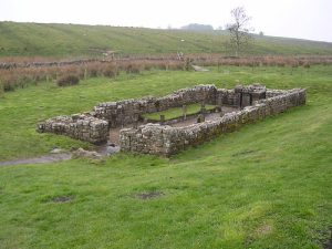 The Carrawburgh Mithraeum lies south-west of the Roman fort at Carrawburgh, Brocolitia. The site of the temple was first discovered in 1949 and was excavated in 1950 by Sir Ian Richmond and Mr J.P.Gillam.
